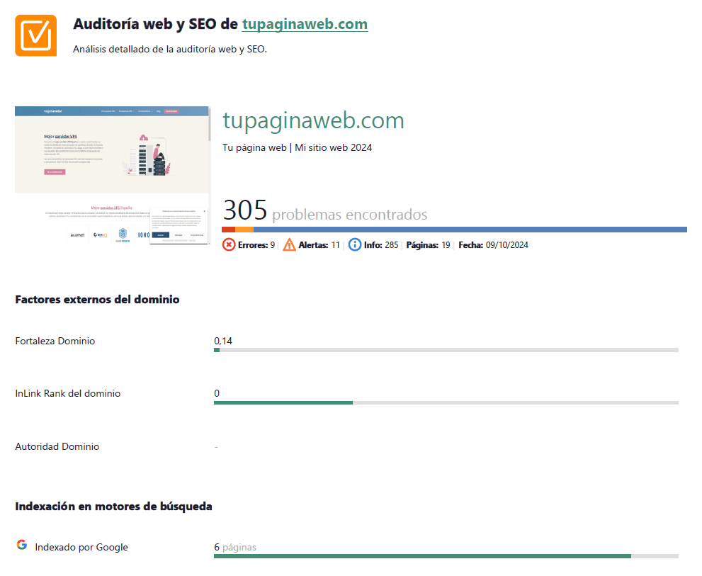El servicio de auditoría SEO no incluye la implementación de las mejoras detalladas en los informes. Esto sería un servicio extra solo para páginas web realizadas en WordPress.