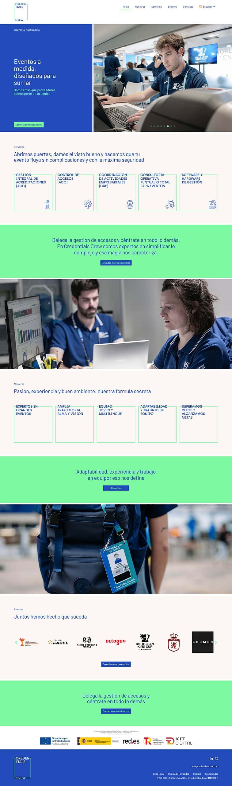 Credentials Crew es una empresa dedicada a la gestión integral de accesos y acreditaciones en eventos. Han organizado eventos muy relevantes en el mundo deportivo como La Copa Davis, Premier Padel, Kings League y Rio Open, entre otros.