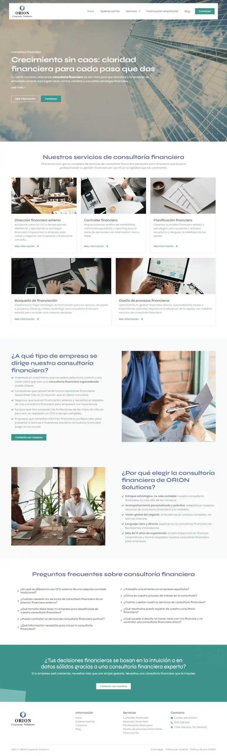 ORION Solutions se posiciona como referente en servicios de consultoría financiera especializada para empresas, ofreciendo acompañamiento en dirección financiera externa, análisis de rentabilidad, planificación estratégica y búsqueda de financiación a medida para cada negocio.​